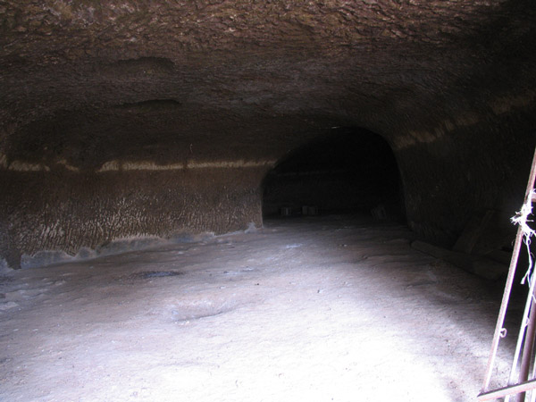 V tejto miestnosti sa skladovali zemiaky...priestor pokračuje ešte hlboko do masívu.