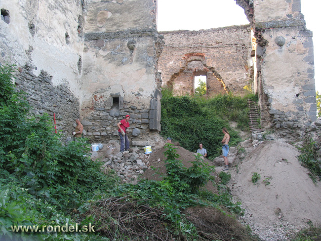 Pohľad celkový na vstup do tretej brány - Zolo ešte muruje kavernu a ostatní kameň z hlbín pivničných vynášajú